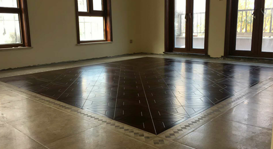 威海貝亞克客戶實木復合拼花、瑪寶木實鋪效果...