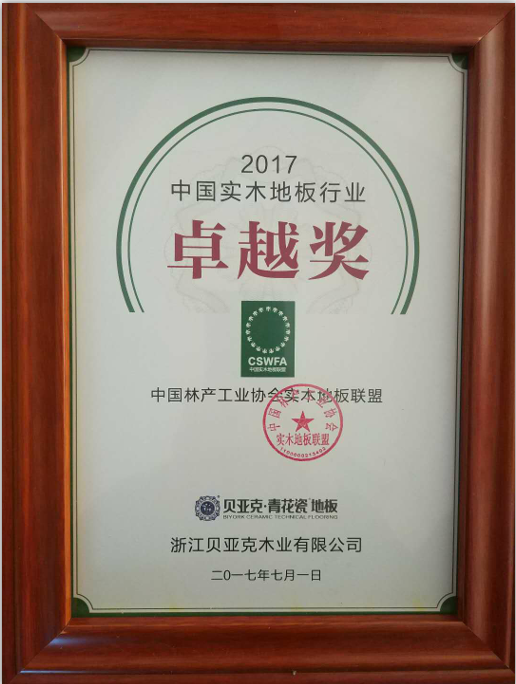 貝亞克青花瓷地板榮獲“2017中國(guó)實(shí)木地板...