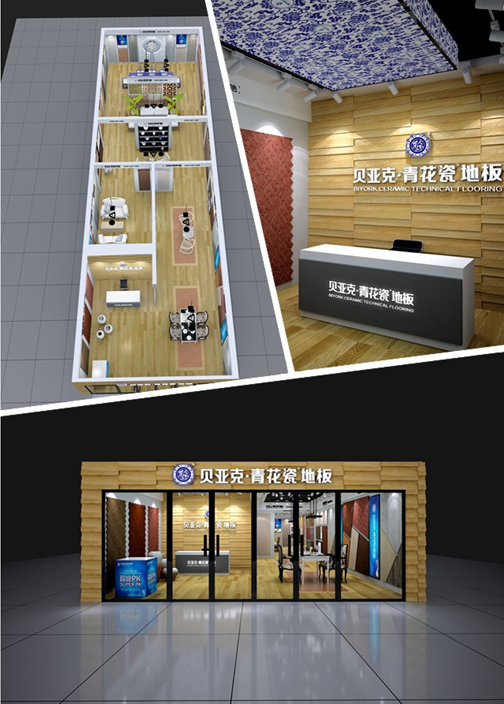 廣西柳州貝亞克?青花瓷地板專賣店裝修效果圖...