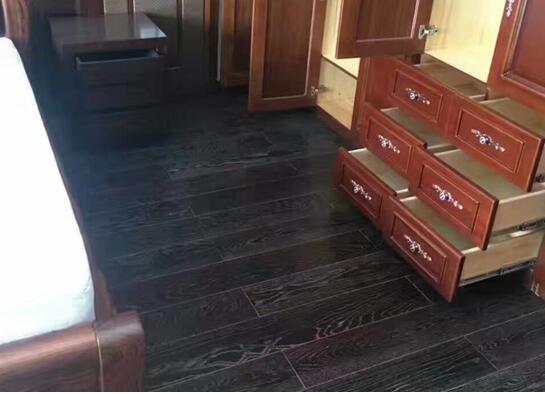 江蘇無錫貝亞克地板客戶黑檀高端定制地板正在...