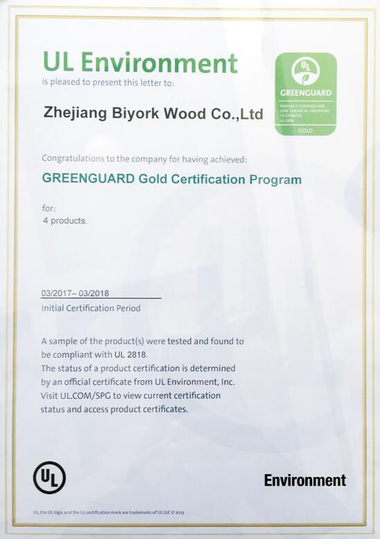 日前,全球產品檢測和認證領域的領導者美國UL正式公布,貝亞克BIYORK公司率先在中國木地板行業獲得GREENGUARD室內空氣質量金牌證書,表明了貝亞克木地板產品在室內空氣質量方面的優異表現,從而最大化地保障了貝亞克地板產品的健康及環保性能。這也是貝亞克繼2016年通過美國CARB認證后取得的又一項具有里程牌意義的產品環保型認證。